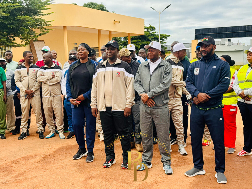 Les membres du cabinet et de nombreux passionnées du sports. Un moment de partage de convivialité et de cohésion sociale entre la jeunesse et son ministère. Le ministre FOMBA rappel a la jeunesse que chaque jeune a sa part de responsabilité dans la construction de son pays.